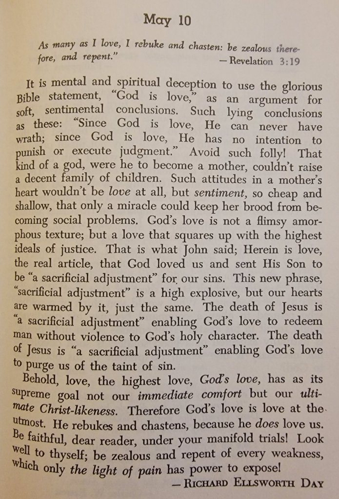 My father-in-law gave us this devotional book awhile ago (seen above) it was his from when he was young and it is excellent! It has provoked a blog post. When we think about the nature or person of God many times we only focus on the “Jesus of the manger” or those old pictures portraying Jesus with a halo and floating on mid air with little children beside Him. And those similar. But when was the last time you saw a photo of Jesus making a whip and driving out the money changers from the temple and overturning tables? Not too many. We must remember that the God who parted the Red Sea for Israel to cross on dry land is also the God who drowned the whole Egyptian army in that same sea. This is the same God who delivered His people out of slavery and into the Promised Land only to send them back into slavery under the power of Babylon for seventy years because of their continued disobedience.